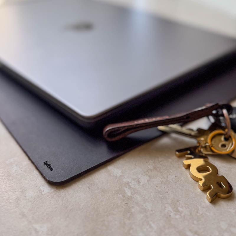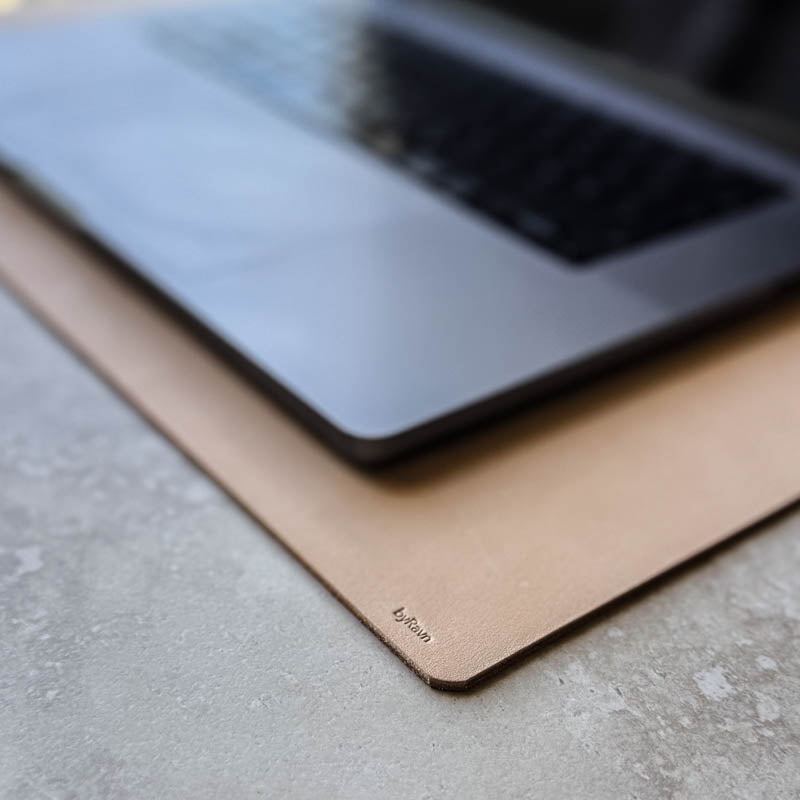 Skrivbordsunderlägg i kraftigt skinn. Med ett enkelt och naturligt intryck ger skrivbordsunderlägget en särskild charm till ditt skrivbord.Du har möjlighet att göra skrivbordsunderlägget personligt med namn, initialer eller en rolig uppmaning.